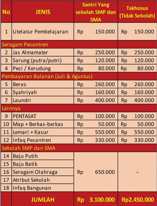 Biaya Santri Baru